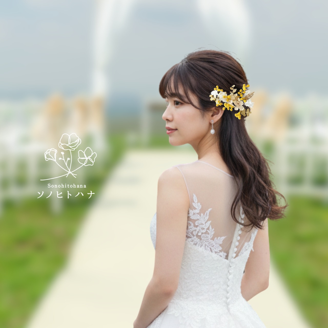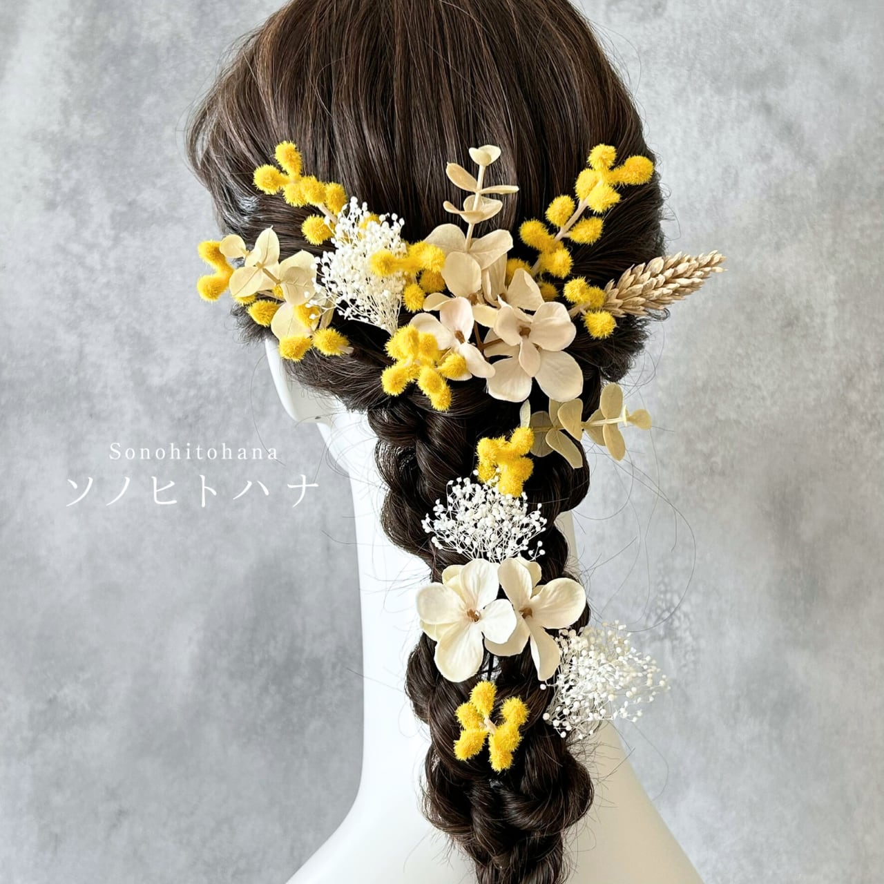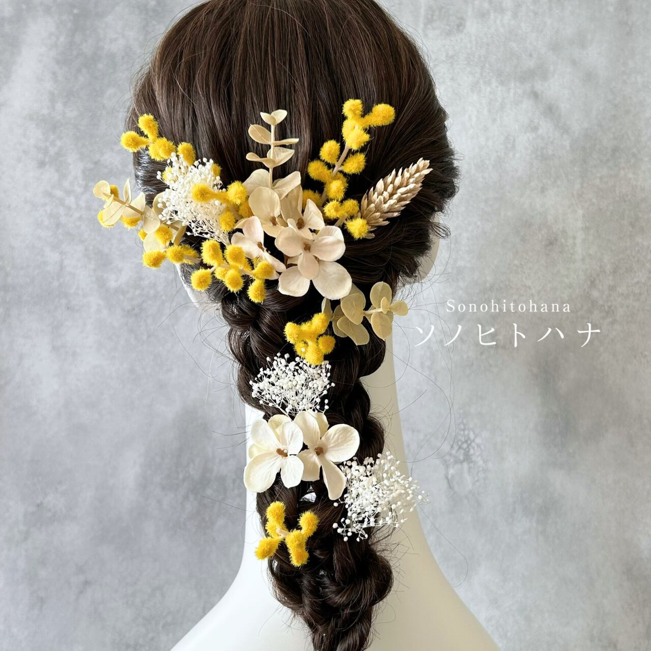 【結婚式・卒業式・成人式】春 ドライ風ミモザの髪飾り|ウエディング・振袖・袴に KA-2602