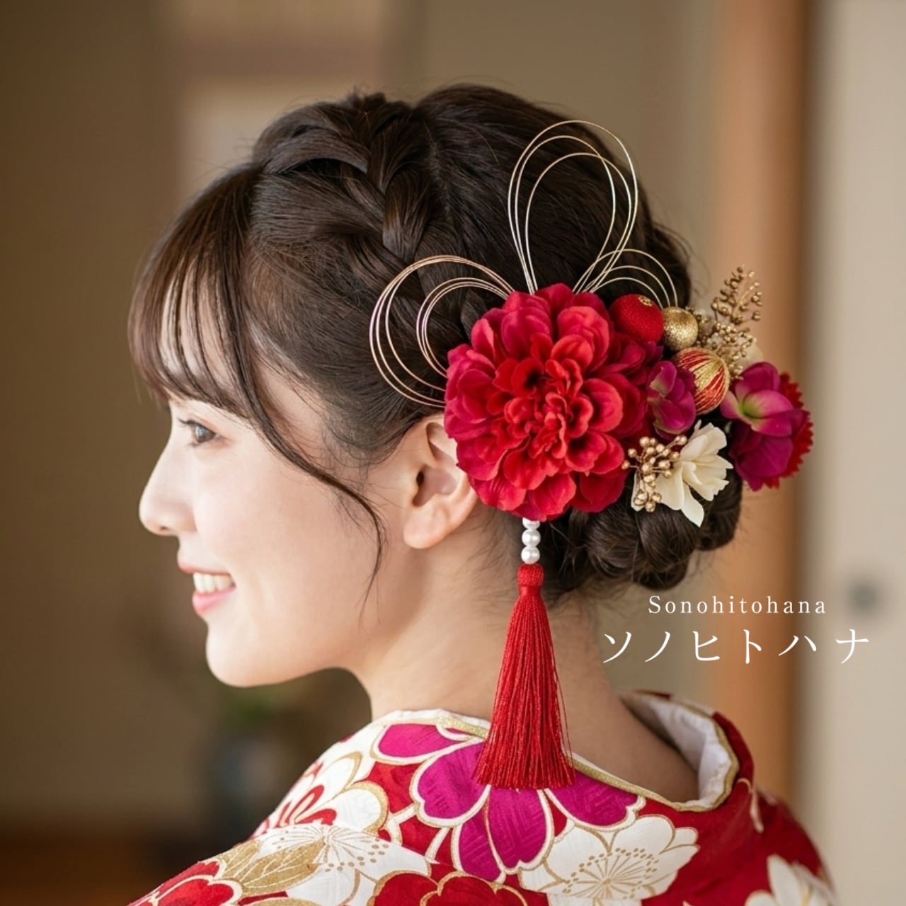 赤系の色合いは和装との相性がよく、
