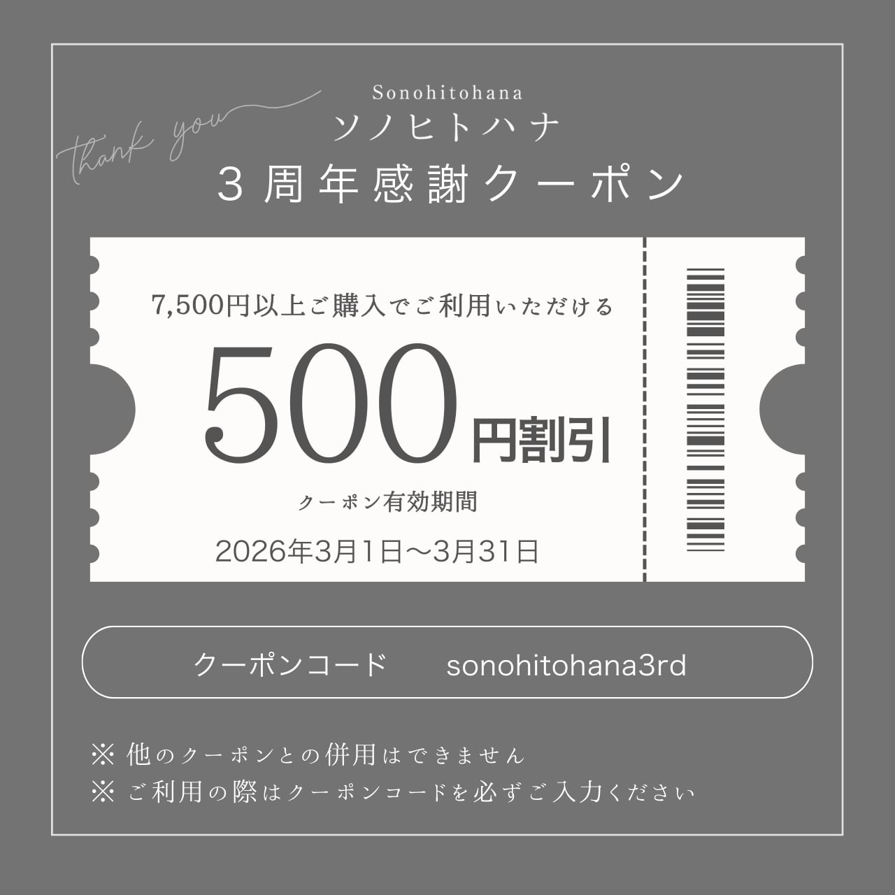 『ソノヒトハナ』では日頃の感謝を込めて、期間限定のご案内をご用意しております。