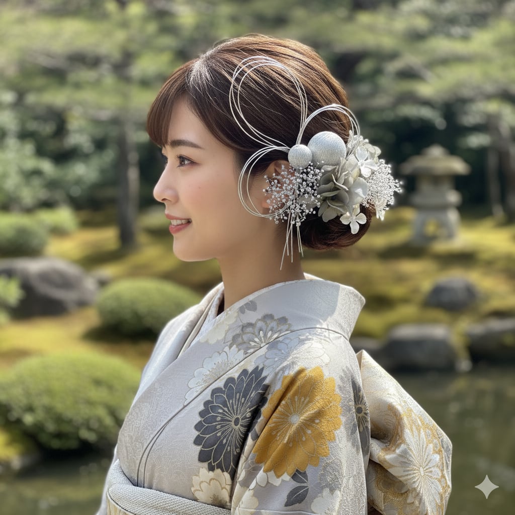 髪飾り メタルフラワー シルバー ウエディング 成人式 卒業式 水引 和装 フラワー 振袖 KA-2402GR